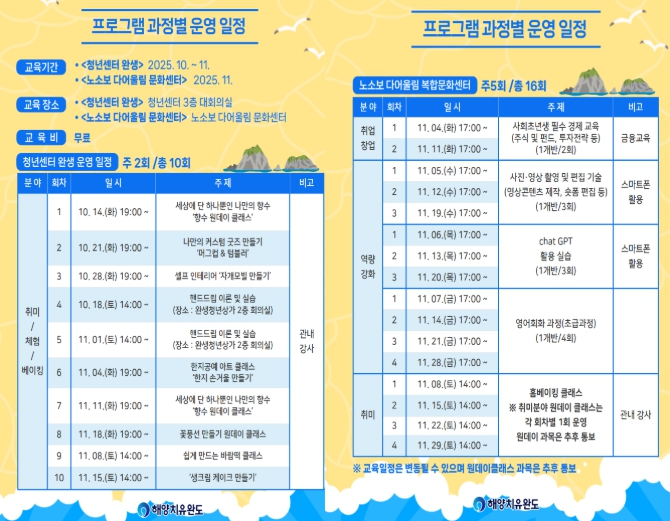 ![]() 완도군, 군민·청년 맞춤형 프로그램 수강생 모집 및 일정 안내 |