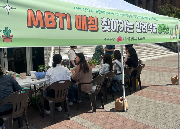 전주시 농업기술센터는 11일 전주대학교 대동단결 연합축제에서 ‘MBTI 매칭 찾아가는 반려식물 공작소’를 운영했다.