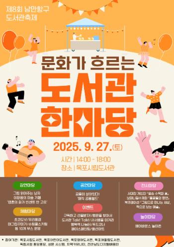 축제 당일인 27일 오후 2시부터는 목포시 소속 도서관과 독립서점, 지역 커뮤니티 등 8개 기관이 참여해 체험마당·전시마당·놀이마당·이벤트 행사를 운영한다.