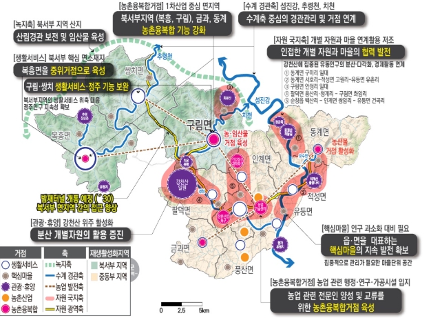 특히, 순창읍과 떨어져 있어 서비스 이용이 어려운 북서부지역(복흥·쌍치·구림면)의 복지·문화 등 생활서비스 기능을 강화하고, 군 내의 배후마을의 인구 과소화에 대응하여 16개 작은 거점육성에도 중점을 뒀다.