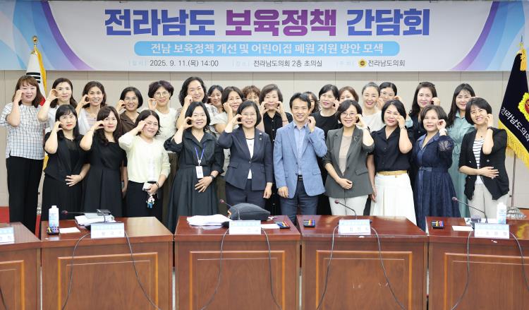 이날 간담회에는 어린이집 관계자, 전문가, 전남도 및 전남도교육청 업무관계자 등이 참석했으며, 저출생과 유보통합 등으로 지속적으로 늘고 있는 어린이집 폐원과 보육서비스 안정성 저해 부분에 대해 의견을 모았다.