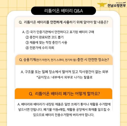 ![]() 강진소방서, 리튬이온배터리 사고 예방을 위한 지속적 홍보와 안전 활동 약속 |