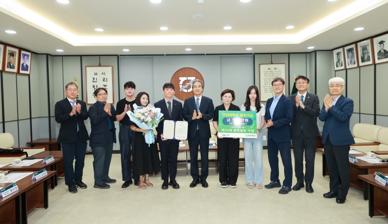 이근배 총장은 “학생회가 자발적으로 장학금을 모아 학우 전체를 위해 기부한 것은 매우 뜻깊은 일”이라며 “이런 선한 영향력이 캠퍼스 곳곳으로 퍼져, 전남대가 서로를 아끼고 성장시키는 공동체로 더 단단해지길 기대한다”고 격려했다.