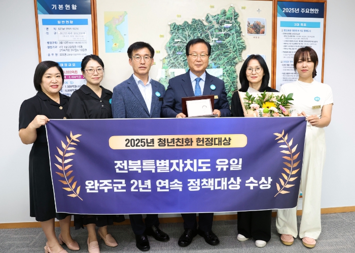 ![]() 완주군, ‘청년친화헌정대상’ 2년 연속 수상 |