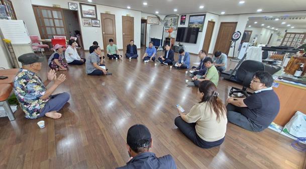 ![]() 신의준 의원(완도2, 더불어민주당)이 완도 군외면 삼두리 돈사 악취 문제 해결을 위해 간담회를 주재하고 있다. |