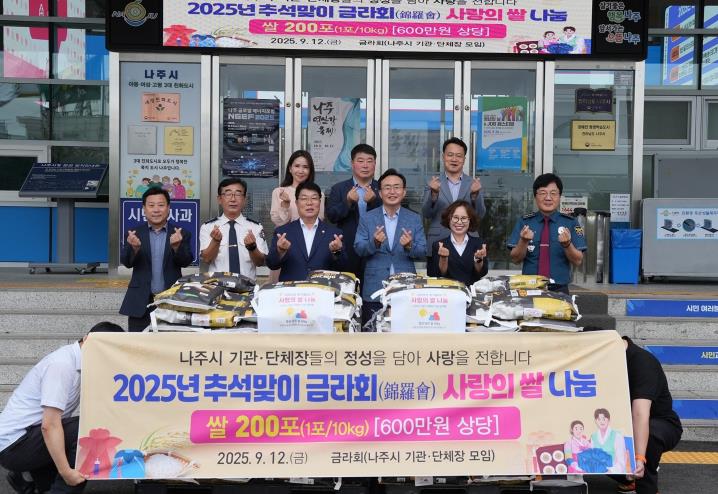 ![]() 나주시 금라회는 지난 12일 추석을 앞두고 취약계층을 돕기 위해 쌀 2000kg를 나주시에 기탁했다. |