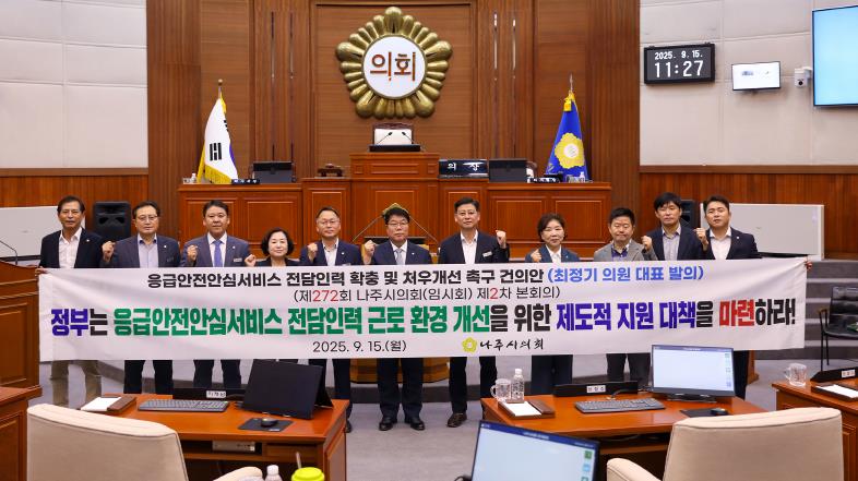 ![]() 나주시의회, ‘응급안전안심서비스 전담인력 확충 및 처우개선 촉구 건의안’ 채택 |