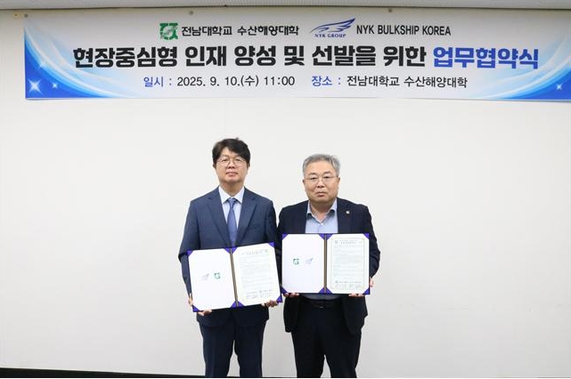 협약식에 참석한 NYK BULKSHIP KOREA 서바다 대표이사도 “이번 협약이 우수한 해기 인재 발굴과 채용 연계의 중요한 발판이 되기를 기대하며, 전남대학교 학생들이 글로벌 해운 무대에서 역량을 발휘할 수 있도록 적극 지원하겠다.”고 밝혔다.