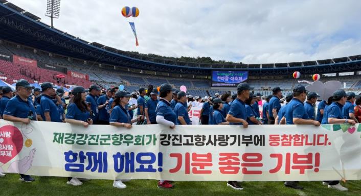 한마음 대축제에 참여한 재경강진군향우회원들은 입장식과 체육대회 등 값진 시간 내내 강진 고향사랑기부제 홍보에 앞장섰다.
