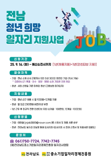 문의는 전남중소기업일자리경제진흥원 또는 전남일자리정보망에서 확인할 수 있다.