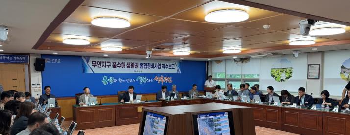 ![]() 15일 군청 상황실에서 열린 무안지구 풍수해생활권 정비사업 착수보고회 |