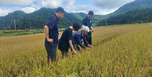 ![]() 박형대 의원(진보당ㆍ장흥1)이 15일 장흥읍 연산리 벼 재배 현장을 찾아 깨씨무늬병 피해 상황을 점검하고 있다. |