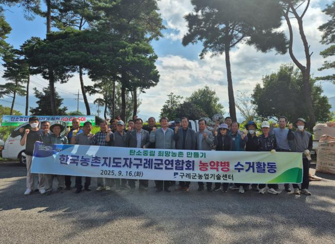 이번에 수거된 농약병은 연합회가 올해 8월부터 회원들에게 배부한 그물망을 통해 지속적으로 수집해 온 것으로, 이는 지난 4월 23일 ‘한국농촌지도자구례군연합회 탄소중립 흙살리기 실천 결의 공동선언'을 바탕으로 한 실천 활동의 일환이다.