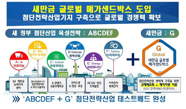 전북자치도는 16일 정부가 국무회의를 통해 확정한 123대 국정과제 중 하나로 새만금 글로벌 메가샌드박스 설정이 포함됐다고 17일 밝혔다. 이를 통해 새만금은 국가가 주도하는 글로벌 첨단 전략산업 기지이자 신산업 테스트베드로 도약할 제도적 기반을 마련했다.