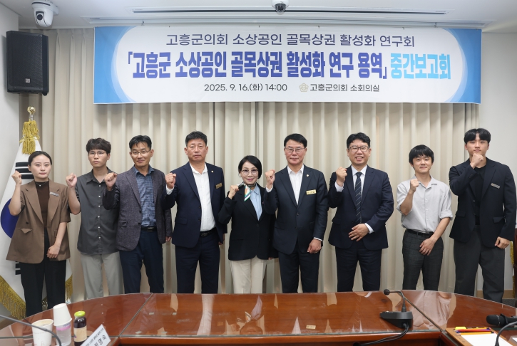 ![]() 고흥군의회,‘소상공인 골목상권 활성화 연구용역’중간보고회 |