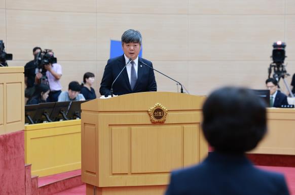 ![]() 본회의장에서 도정질문 중인 박원종 전남도의원 |