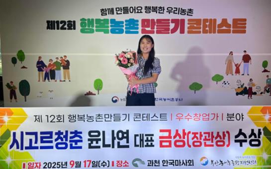 ![]() 부안 시고르청춘 윤나연 대표행복농촌 만들기 콘테스트 우수창업가 분야 금상 수상 |