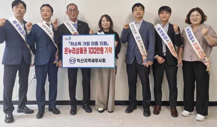 이날 기탁식에서 익산지역 세무사회는 온누리상품권 100만 원을 전달했다.