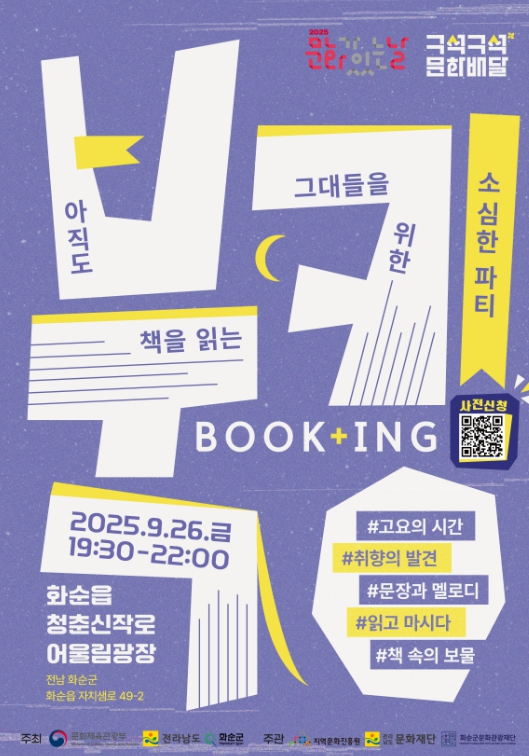 '구석구석 문화배달 – Book+ing'이라는 이름으로 열리는 이번 프로그램은 책을 매개로 낯선 이들이 연결되고, 주민들이 자연스럽게 문화 속으로 들어올 수 있도록 기획된 참여형 행사다.