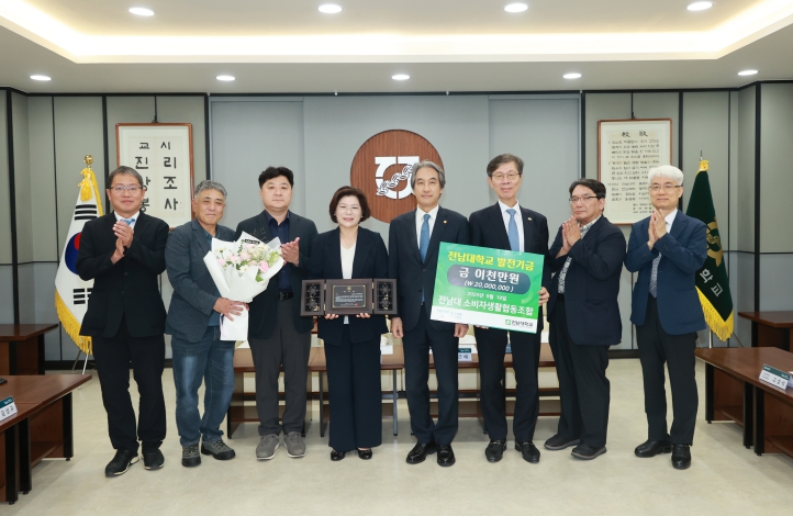 22일 전남대에 따르면, 생협은 지난 19일 대학본부 5층 접견실에서 이근배 총장과 주요 보직자, 정난희 이사장 등이 참석한 가운데 2천만 원의 발전기금 전달식을 가졌다.