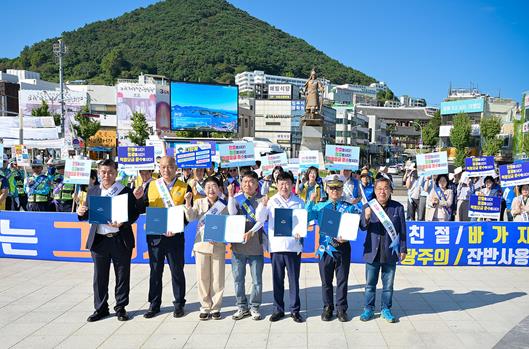 ![]() 여수시(시장 정기명)는 지난 23일 이순신광장 일원에서 민‧관 합동 친절관광 캠페인을 실시했다. |