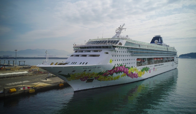 ![]() 지난 3월 12일 여수항에 입항한 ‘노르웨지언 스카이호’ |