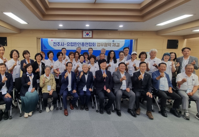시는 25일 전주시청에서 윤동욱 전주 부시장, 김영기 회장을 비롯한 유럽한인총연합회 임원단이 참석한 가운데 경제·문화관광·스포츠 분야의 교류 활성화와 상호협력을 위한 업무협약을 체결했다.
