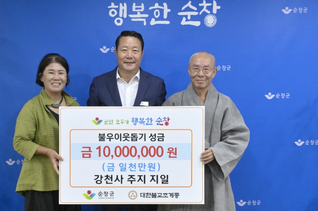 ![]() 천년고찰 순창 강천사, 불우이웃돕기 성금 1천만원 기탁 |