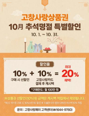 ![]() 고창사랑상품권_추석명절 20%특별할인 |