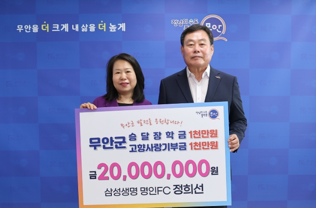 또한 정희선 명인FC는 지역사회에 대한 지속적인 관심과 사랑으로 지난 2023년 고향사랑기부금 5백만원, 2024년 고향사랑기부금 5백만원 및 승달장학금 1천만원을 기탁하는 등 꾸준한 나눔으로 지역사회의 귀감이 되고 있다.