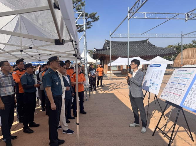 이번 보고회는 축제 주행사장인 벽골제 신정문에서 시작해 주요 프로그램 운영 공간별로 이동하며 진행됐다. 이날 정성주 김제시장을 비롯한 간부 공무원과 관계 공무원 및 경찰‧소방 등 유관기관이 참석해 행사 전반의 추진 상황을 공유하고 미비점을 보완하는 시간을 가졌다.