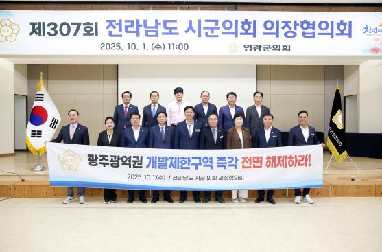 한편, 장성군의회는 지난 9월 열린 제371회 임시회에서“광주광역권 개발제한구역 전면 해제 건의문”을 채택한 바 있으며, 전라남도 시군 의회 의장협의회는 본 건의문을 국회, 국토교통부 등 관계 중앙부처에 전달할 예정이다.