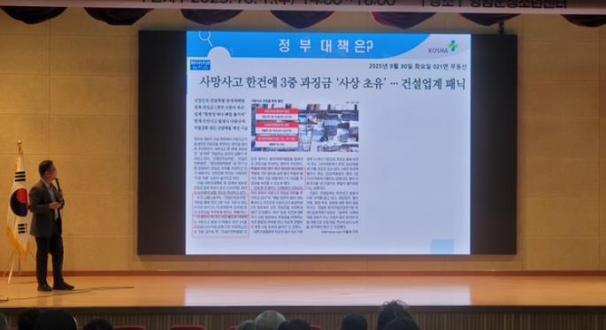 특히, △발주시 안전관리 방안 △중대재해처벌법 △건설현장 사고사례 및 예방 대책 등을 내용으로 현장 중심 실무 노하우와 대응 전략을 전했다.