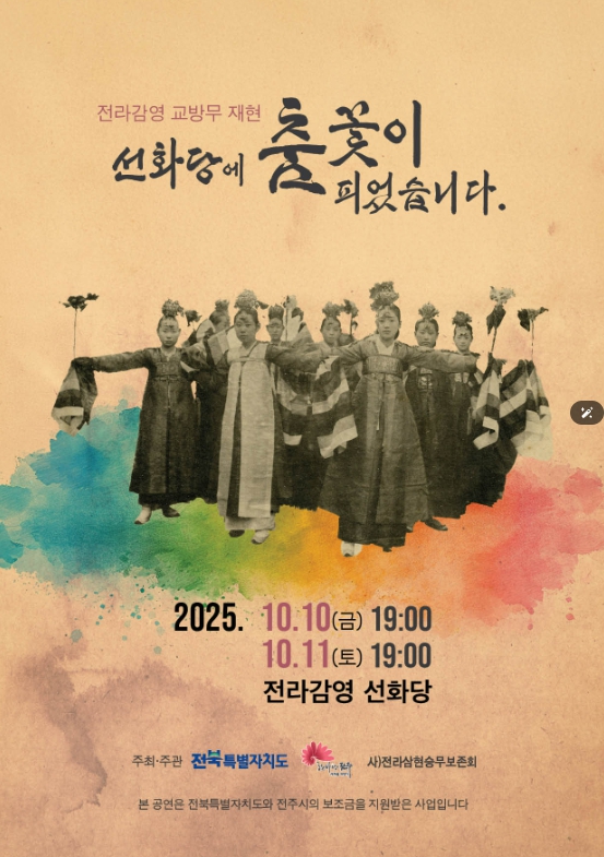 이번 공연은 조선시대 전라감영에서 실제 이루어졌던 교방무 연희 문화를 복원하고 재현한 특별 프로그램으로, 시는 다채로운 춤이 어우러진 전통 공연을 통해 우리 고유의 예술성과 문화유산을 현대적으로 풀어낸 무대를 선보일 예정이다.