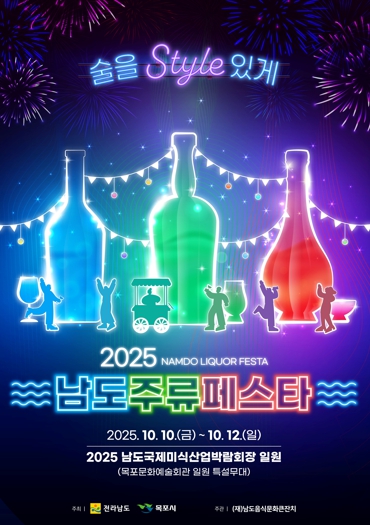 2025남도국제미식산업박람회 연계 행사로 개최되는 이번 주류 페스타는 ‘술을 Style 있게!’를 주제로 진행된다. 60여 종 전통주 시음·판매, 칵테일쇼, 유명가수 공연이 펼쳐진다. 체험 프로그램은 전통주 만들기, 남도주류 컬링, 남도주류 라이더 등이 다양하게 마련돼 축제장을 찾는 관람객들의 오감을 사로잡을 예정이다.