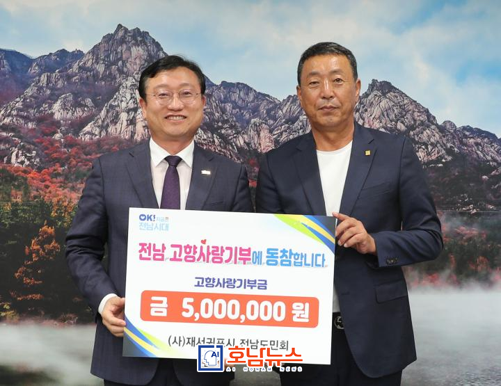 Jeollanam-do Province announced on the 12th that the Jeju Seogwipo Jeonnam Association donated 5 million won to the Hometown Love Donation Program on the 10th.