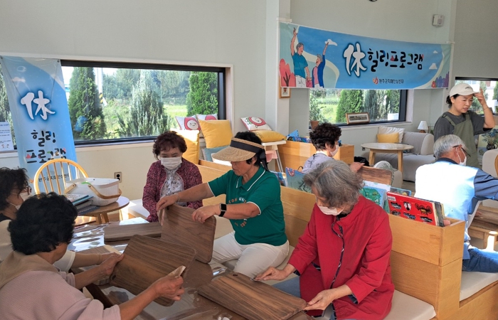 이 프로그램은 치매환자를 돌보느라 심신이 지친 가족들에게 심리적 부담 해소와 사회적 고립을 방지하기 위해 마련됐으며, 일상을 벗어나 평소에 경험하지 못한 카페체험과 목공예(도마 만들기) 활동 등 카페 앞 꽃밭에서 산책을 하며 몸의 이완과 힐링 시간을 가졌다.