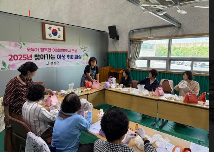 ‘찾아가는 여성 취미교실’은 9월 22일부터 10월 17일까지 강진군 11개 읍·면을 순회하며 운영되고 있으며, 건전한 여가활동을 통한 자기능력 개발과 문화적 역량 강화, 나아가 취업 및 부업으로의 연계 가능성까지 넓히고 있다.