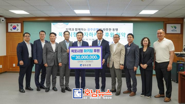 이번 협약을 통해 광주은행은 2026년부터 2028년까지 매년 3천만 원씩, 총 9천만 원을 목포시청 여자하키팀에 지정 기탁하기로 했다.