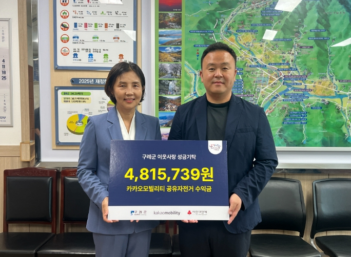 오수미 구례부군수는 “공유자전거 수익금을 군민을 위한 복지사업에 기부해주신 카카오모빌리티에 깊이 감사드린다”며, “군민이 체감할 수 있는 복지 향상과 기업과의 상생 협력을 위해 적극 노력하겠다”고 말했다.