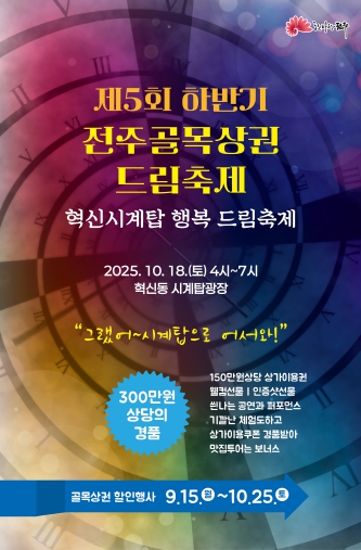 전주시는 오는 18일 오후 4시, 혁신동 시계탑 광장에서 지역 상인과 주민이 함께하는 ‘골목상권 드림축제’를 개최한다.