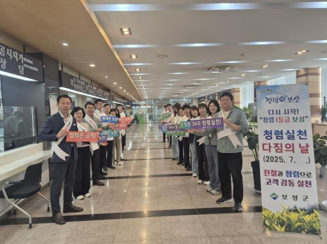 ![]() 보성군, 행안부 ‘국민행복민원실’ 3회 연속 선정_보성군청 민원실에서 직원들이 친절민원 실천을 다짐하고 있다 |
