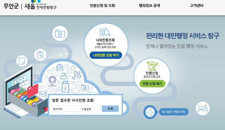 ![]() 무안군청 홈페이지에 개설된 무안군 전자민원창구 |