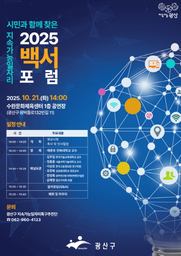 광주 광산구는 21일 오후 2시부터 수완문화체육센터에서 '시민과 함께 찾은 지속가능 일자리'를 주제로 2025 지속가능 일자리 백서 포럼(공개토론회)을 개최한다고 밝혔다.