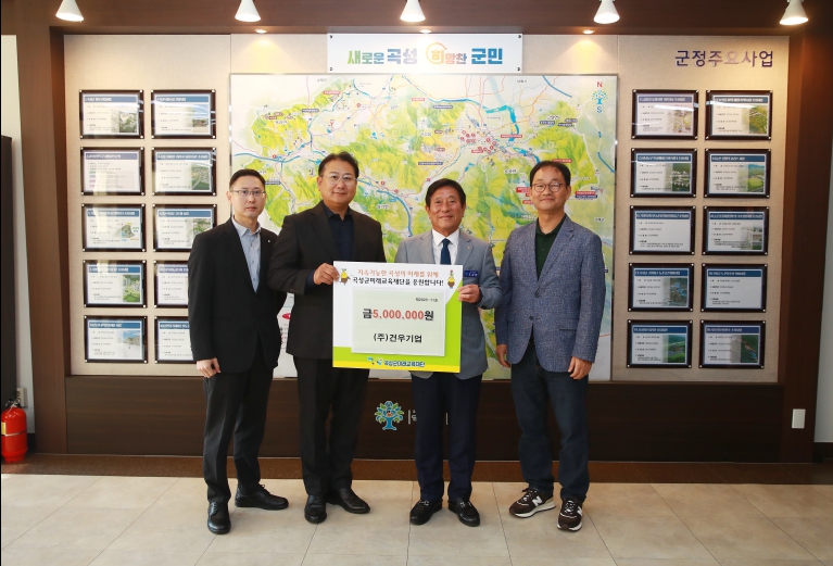 ![]() ㈜건우기업, 곡성군 교육사업 지원하기 위해 곡성군미래교육재단에 5백만 원 기탁 |