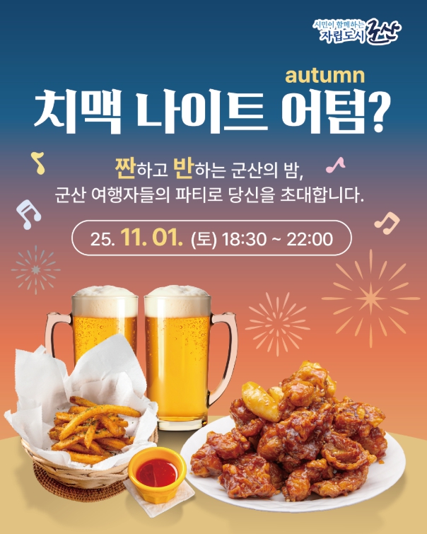 ![]() 군산시, 추운 가을밤을 뜨겁게 달굴, 치맥나이트 개최 |