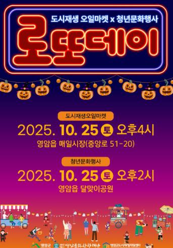신환종 영암군 도시디자인과장은 “이번 영암 로또데이는 가을밤 프로그램과 가족참여형 플리마켓을 결합해, 영암군민과 관광객이 함께 즐기며 도시재생과 공동체 활동을 체감할 수 있는 자리다. 많은 분들이 행사장을 찾아 즐겨주길 바란다”고 전했다.