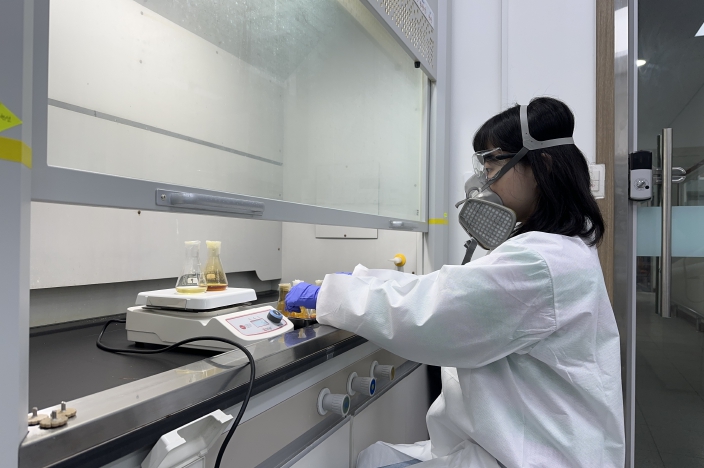 ![]() 퇴비 부숙도 검사를 위해 분석시료를 훔후드에서 가열하여 분해하는 모습 |