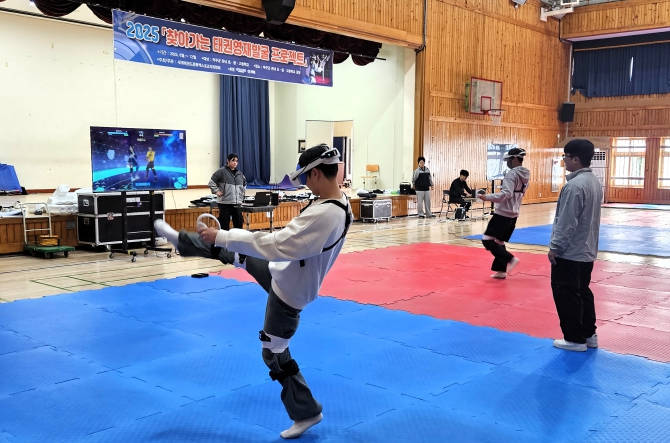 지난 14일에는 무주중앙초, 20일 무주중학교에서 진행됐으며 24일과 31일에는 무주중학교, 28일에는 설천초등학교, 11월 3일에는 무주초등학교 학생들이 가상현실(Virtual Reality) 기반의 태권도 경기를 체험할 예정이다.