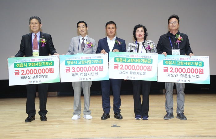 특히, 고향 사랑을 실천하는 기부 행렬이 이어져 행사의 의미를 더했다. 재경 정읍시민회가 300만원, 재부산 정읍향우회·재성남 정읍시민회·재안산 정읍향우회가 각각 200만원씩, 총 900만 원의 고향사랑기부금을 쾌척했다.